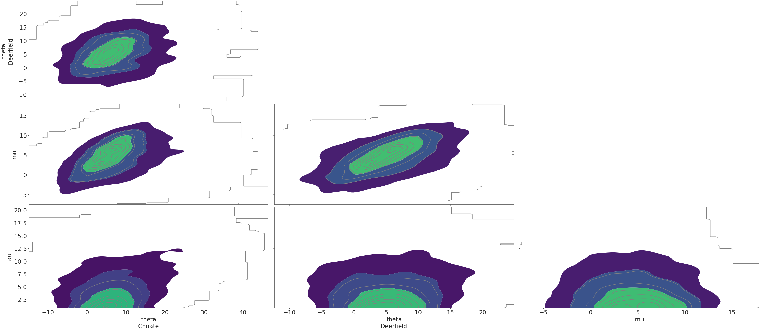 Example gallery# Mixed Plots# Forest Plot with ESS using plot_forest ./plot_forest_mixed.html Traceplot using plot_trace ./plot_trace.html Rank Bars Diagnostic with KDE using plot_trace ./plot_trace_bars.html Traceplot with Circular Variables using plot_trace ./plot_trace_circ.html Traceplot rank_vlines using plot_trace ./plot_trace_vlines.html Distributions# Density Plot using plot_density ./plot_density_single.html Dist Plot using plot_dist ./plot_dist.html Dot Plot using plot_dot ./plot_dot.html ECDF Plot using plot_ecdf ./plot_ecdf.html Forest Plot using plot_forest ./plot_forest.html Ridgeplot using plot_forest ./plot_forest_ridge.html Joint Plot using plot_pair ./plot_joint.html KDE Plot using plot_kde ./plot_kde.html 2D KDE using plot_kde ./plot_kde_2d.html 2D KDE with HDI Contours using plot_kde ./plot_kde_2d_hdi.html KDE quantiles using plot_kde ./plot_kde_quantiles.html Hexbin PairPlot using plot_pair ./plot_pair_hex.html KDE Pair Plot using plot_pair ./plot_pair_kde.html KDE Pair Plot with HDI Contours using plot_pair ./plot_pair_kde_hdi.html Point Estimate Pairplot using plot_pair ./plot_pair_point_estimate.html Posterior Plot using plot_posterior ./plot_posterior.html Posterior Plot (reducing school dimension) using plot_posterior ./plot_posterior_combinedims.html Violin plot using plot_violin ./plot_violin.html Distribution Comparison# Density Plot (Comparison) using plot_density ./plot_density.html ECDF Plot (Comparison) using plot_ecdf ./plot_ecdf_comparison.html Forest Plot Comparison using plot_forest ./plot_forest_comparison.html Single-Sided Violin Plot using plot_violin ./plot_violin_single_sided.html Inference Diagnostics# Autocorrelation Plot using plot_autocorr ./plot_autocorr.html Energy Plot using plot_energy ./plot_energy.html ESS Evolution Plot using plot_ess ./plot_ess_evolution.html ESS Local Plot using plot_ess ./plot_ess_local.html ESS Quantile Plot using plot_ess ./plot_ess_quantile.html Quantile Monte Carlo Standard Error Plot using plot_mcse ./plot_mcse.html Quantile MCSE Errobar Plot using plot_mcse ./plot_mcse_errorbar.html Pair Plot using plot_pair ./plot_pair.html Parallel Plot using plot_parallel ./plot_parallel.html Rank plot using plot_rank ./plot_rank.html Regression or Time Series# Plot HDI using plot_hdi ./plot_hdi.html Regression Plot using plot_lm ./plot_lm.html Model Comparison# Bayes Factor Plot using plot_bf ./plot_bf.html Compare Plot using plot_compare ./plot_compare.html ELPD Plot using plot_elpd ./plot_elpd.html Pareto Shape Plot using plot_khat ./plot_khat.html Model Checking# Bayesian u-value Plot using plot_bpv ./plot_bpv.html Bayesian p-value with T statistic Plot using plot_bpv ./plot_bpv_tstat.html LOO-PIT ECDF Plot using plot_loo_pit ./plot_loo_pit_ecdf.html LOO-PIT Overlay Plot using plot_loo_pit ./plot_loo_pit_overlay.html Posterior Predictive Check Plot using plot_ppc ./plot_ppc.html Posterior Predictive Check Cumulative Plot using plot_ppc ./plot_ppc_cumulative.html Separation Plot using plot_separation ./plot_separation.html Styles# Use Matplotlib Styles with arviz.style.use(). ./styles.html